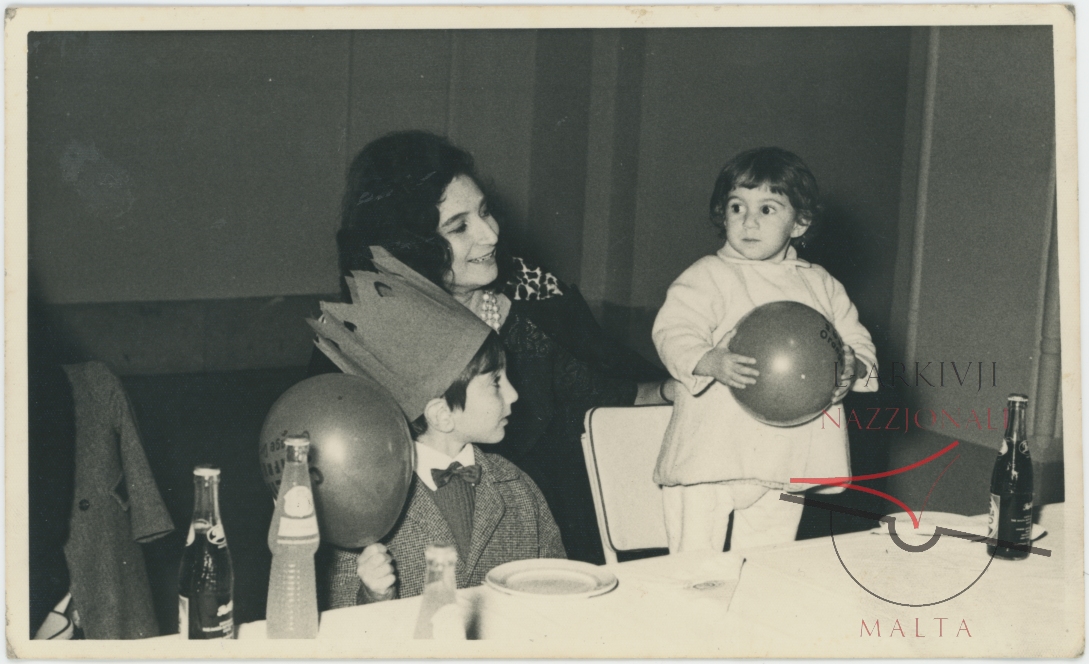 Photo shows 2 children and their mother, having their photo taken. The event is a staff party for Hal Luqa Civil Airport staff and families