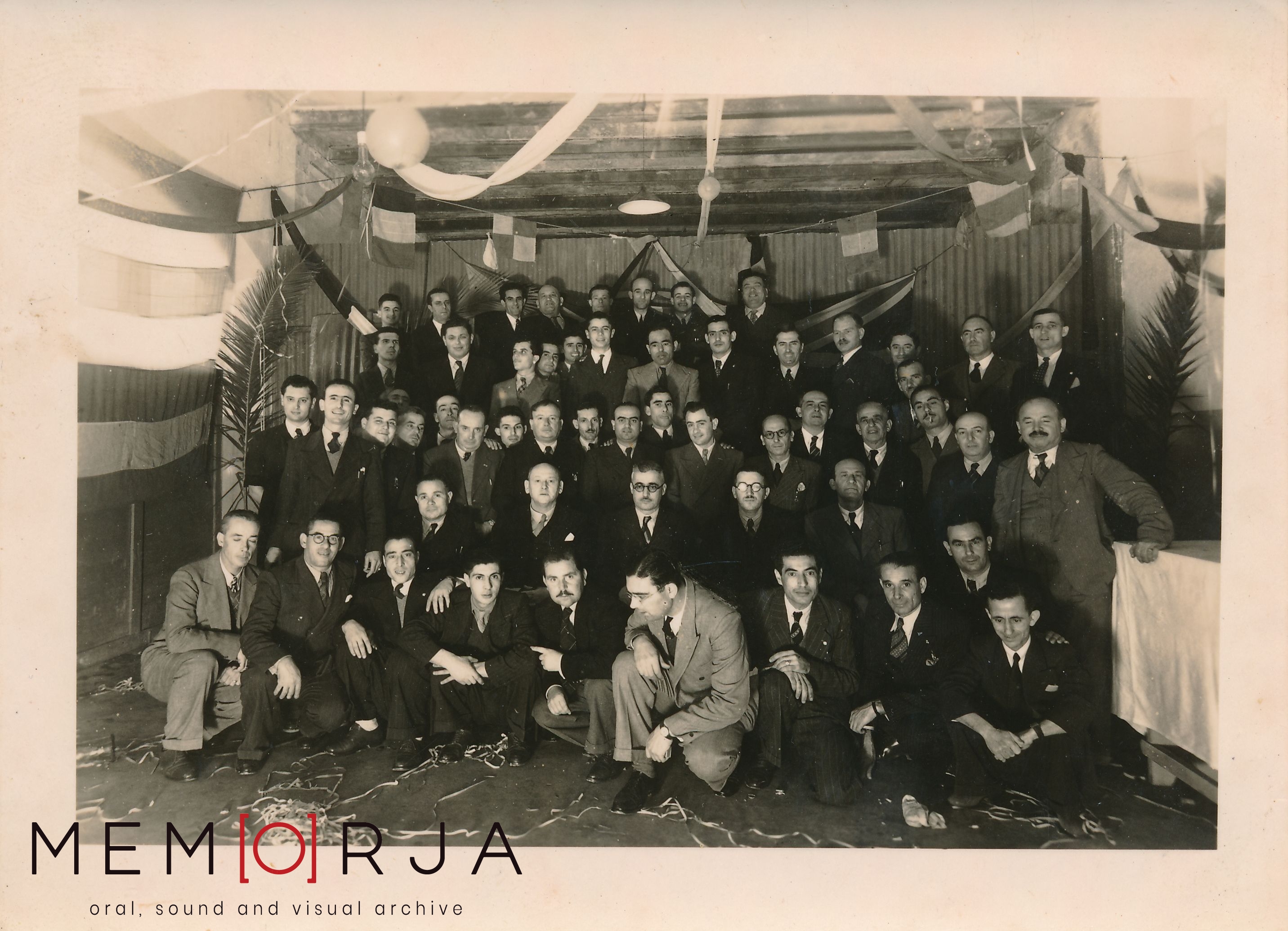 On the reverse: Powerstation employees. Date n/a. Censinu Caruana is standing in the second row from the back, sixth from right