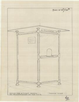 Design showing the sketch view of a ticket booth as recommended by the T.C.B.