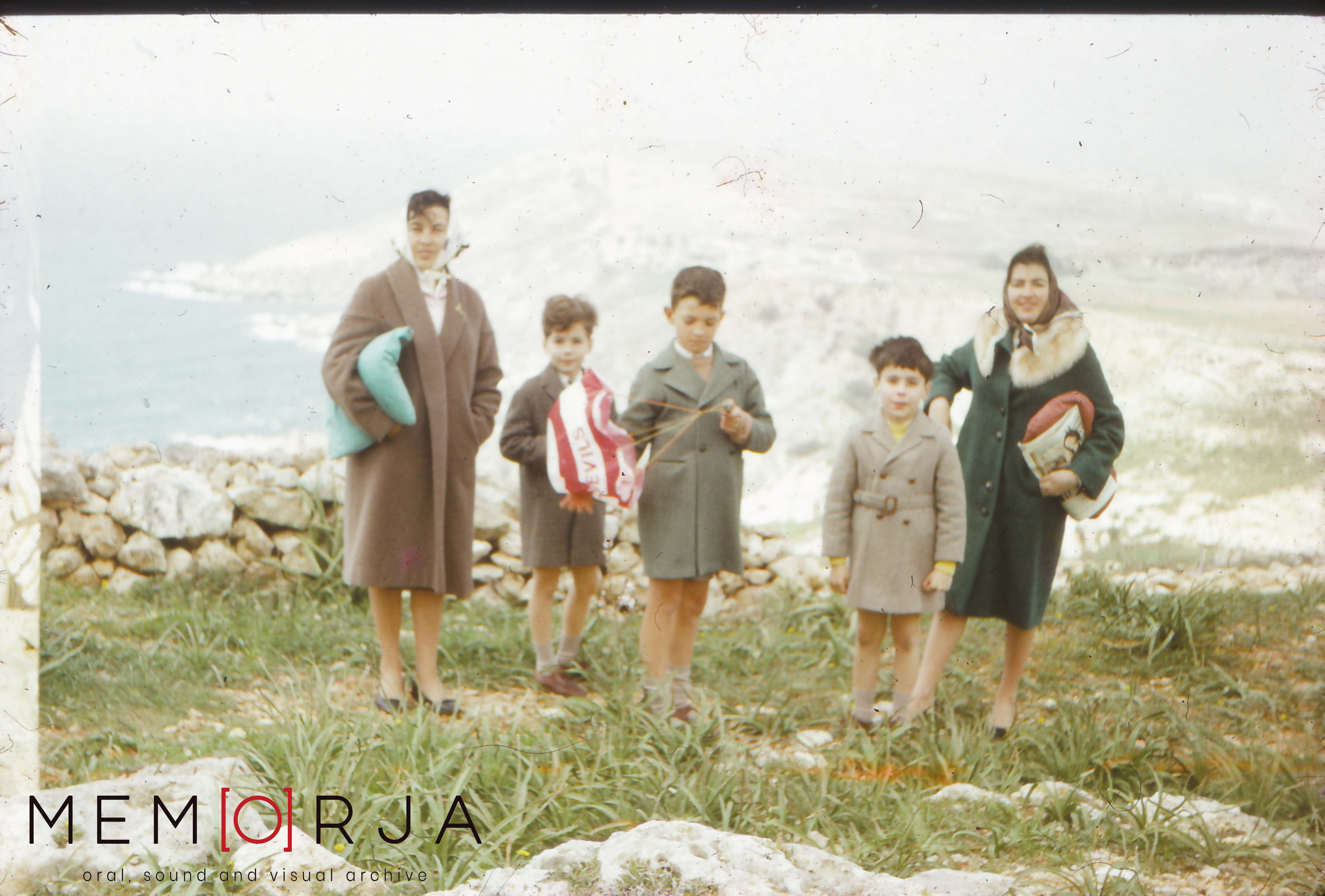 (From left) Loulou Mifsud Bonnici, Mark Mifsud Bonnici (her son, with mini-parachute), and Carmen Pizzuto (Loulou's younger sister) with two unidentified boys.