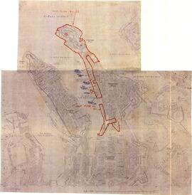 showing Vittoriosa, Kalkara, Senglea & Cospicua; (wide yellow and pink band through whole height due to scanner malfunction)