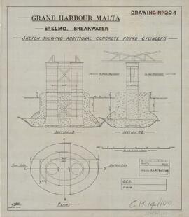 Grand Harbour Malta - St Elmo Breakwater - Sketch showing additional concrete round Cylinders