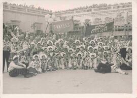 Loulou Pizzuto and Maurice Mifsud Bonnici are fifth and sixth from the right, respectively. The carnival company 'The Skaters' had won first prize in the Valletta carnival floats' competition, sometime in the late-1940s. Their float's title was 'The Reindeers'.