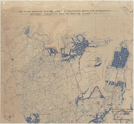 Key plan showing in a red line the proposed route for a tramway between Valletta and Pembroke camp.