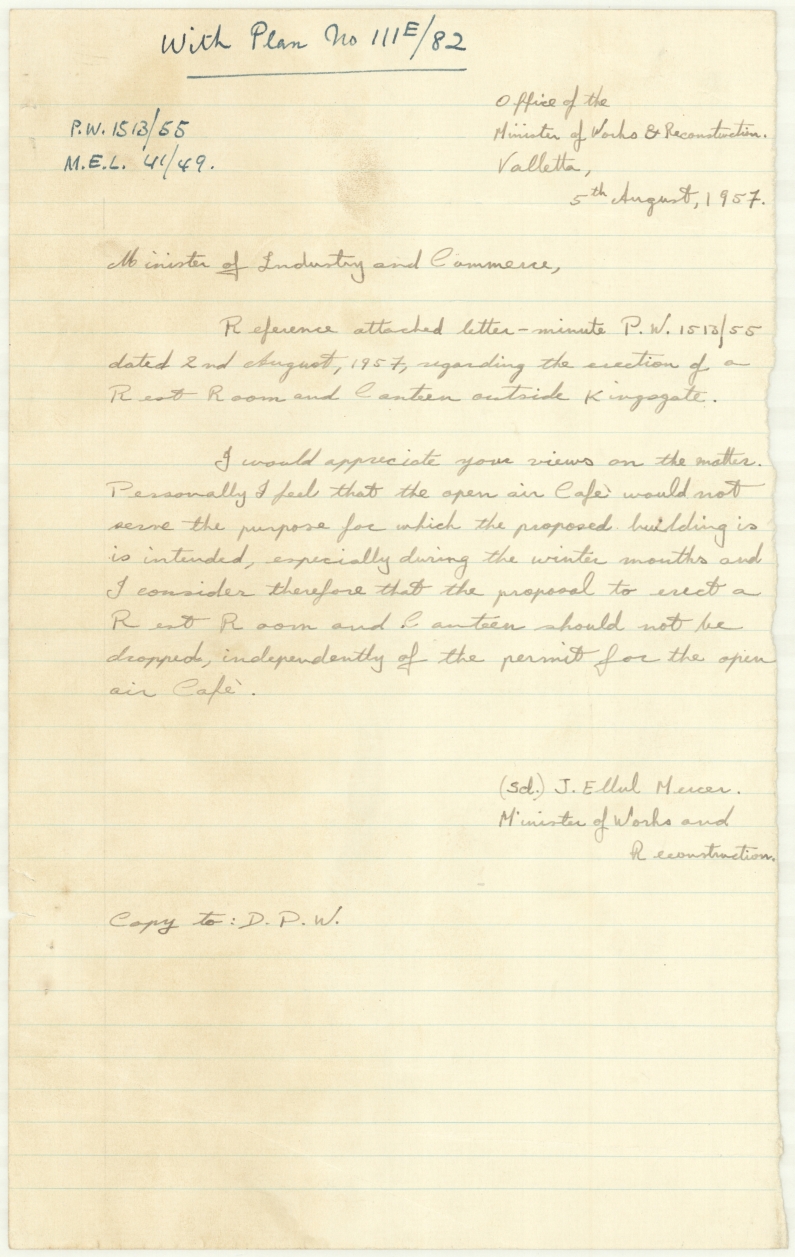 Letter from the Minister of Works and Reconstruction to Minister of Industry and Commerce