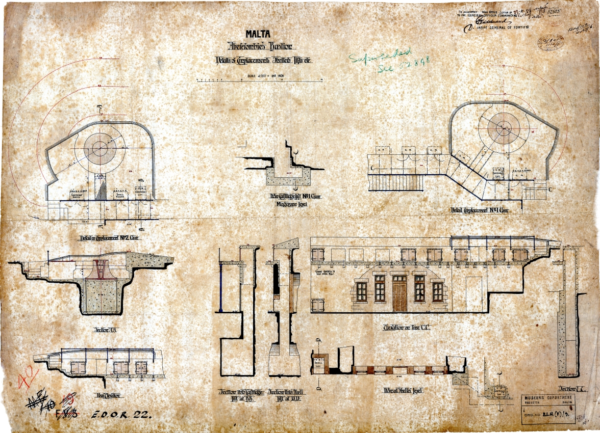 Malta - Abercombies Bastion - Details of Emplacements, Shelters, Lifts, etc.