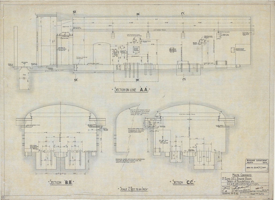 Malta Command - D.E.L. Engine Room - Details of foundations etc. - D.C.R.E. Reconstruction