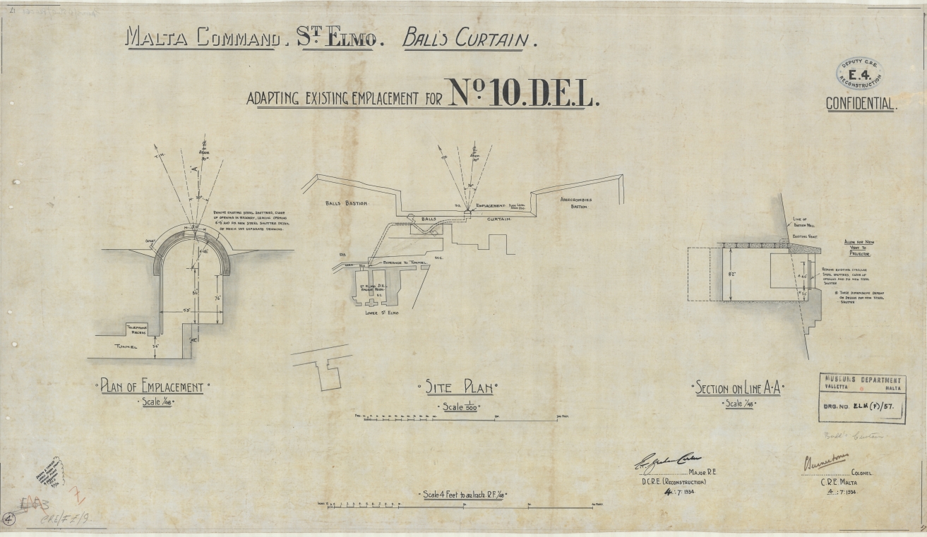 Malta Command - St Elmo - Ball's Bastion - Adapting existing Emplacement for No. 10 D.E.L