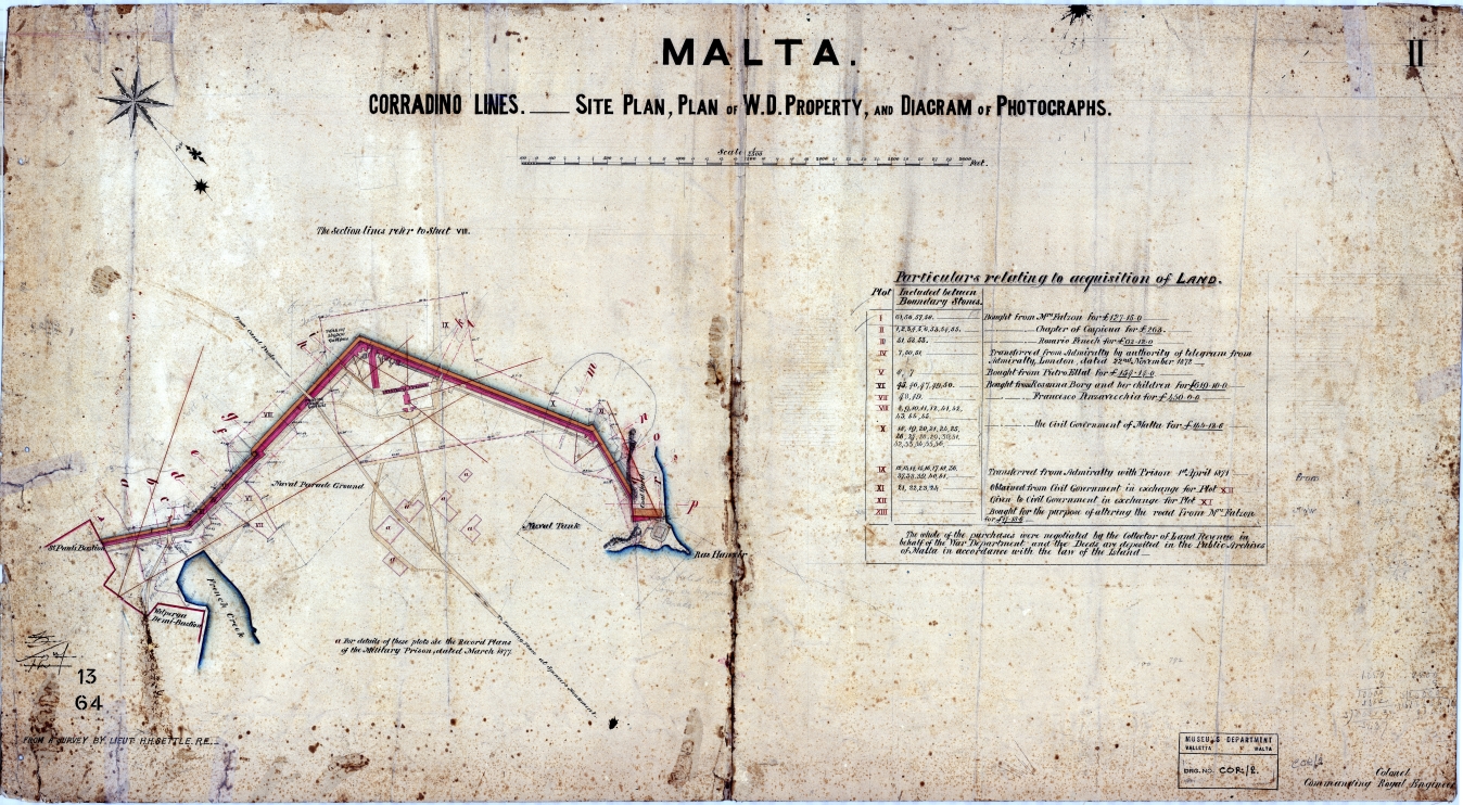 Malta - Corradino Lines - Site Plan, Plan or W.D. Property, and Diagram of Photographs