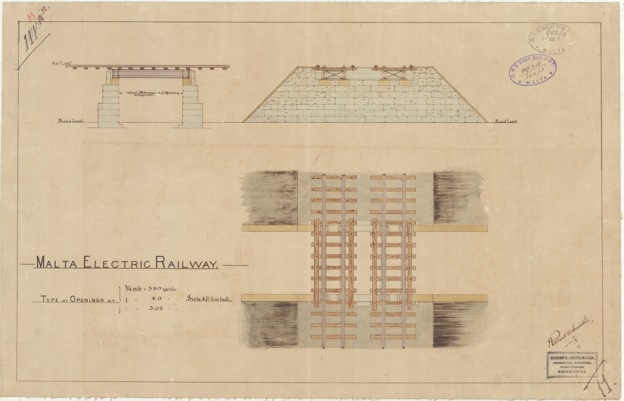 Malta Electric Railway - Sketch, elevation and section of types of openings