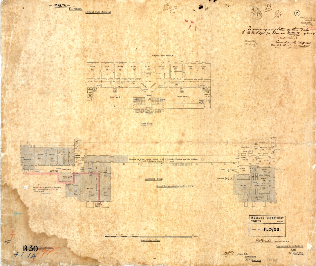 Malta - Floriana - Civil Hospital - First Floor and Basement Plans