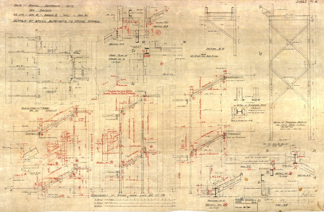 MALTA - Manoel Destroyer Depot - New Canteen - Details of Steel Supports to Stone Stairs