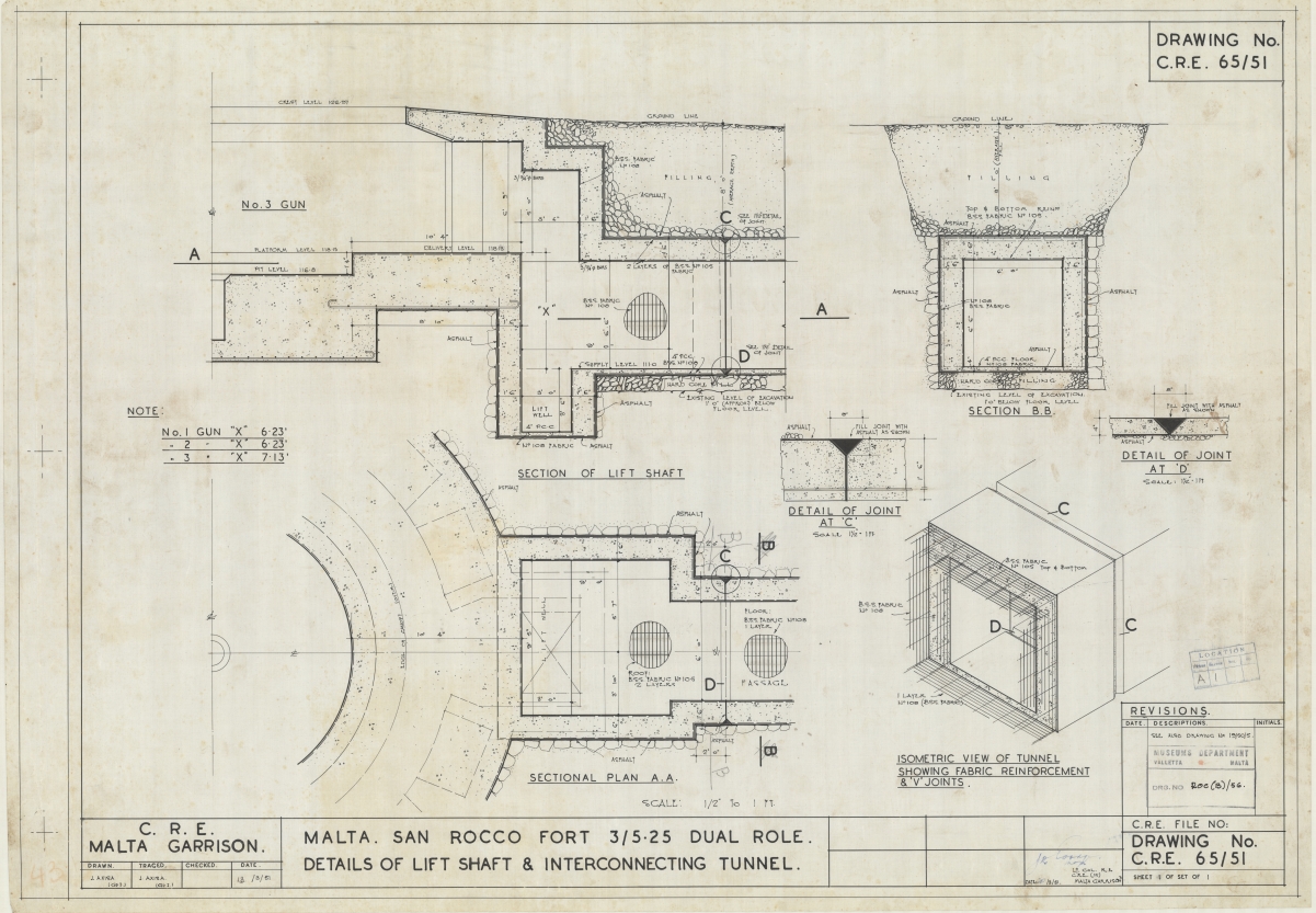 Malta - San Rocco - 3 / 5.25" Dual Role BTY - Details of Lift Shaft & Interconnecting Tunnel