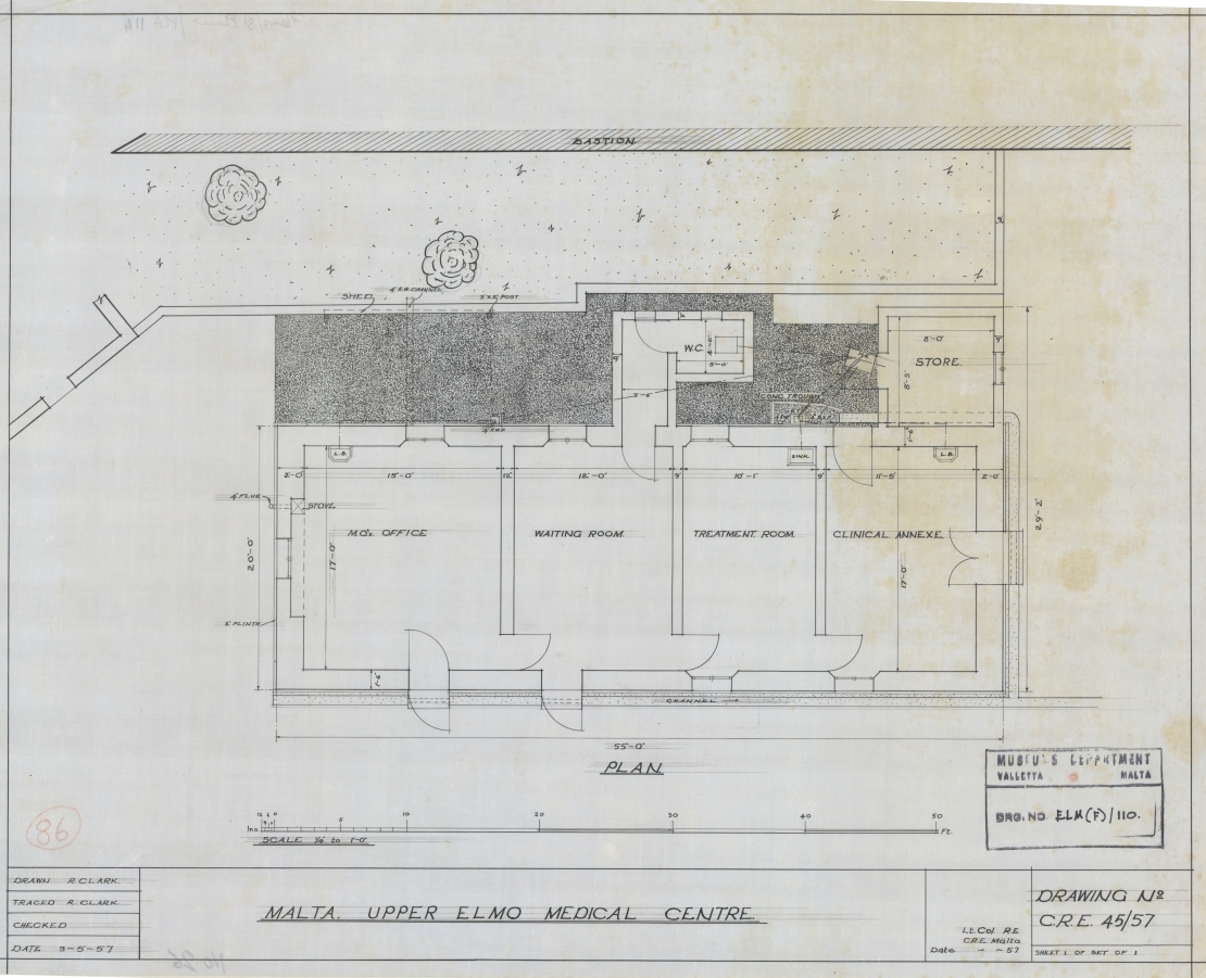 86 (circled in Red pencil); Drawing No. C.R.E. 45/57; Sheet 1 of set of 1