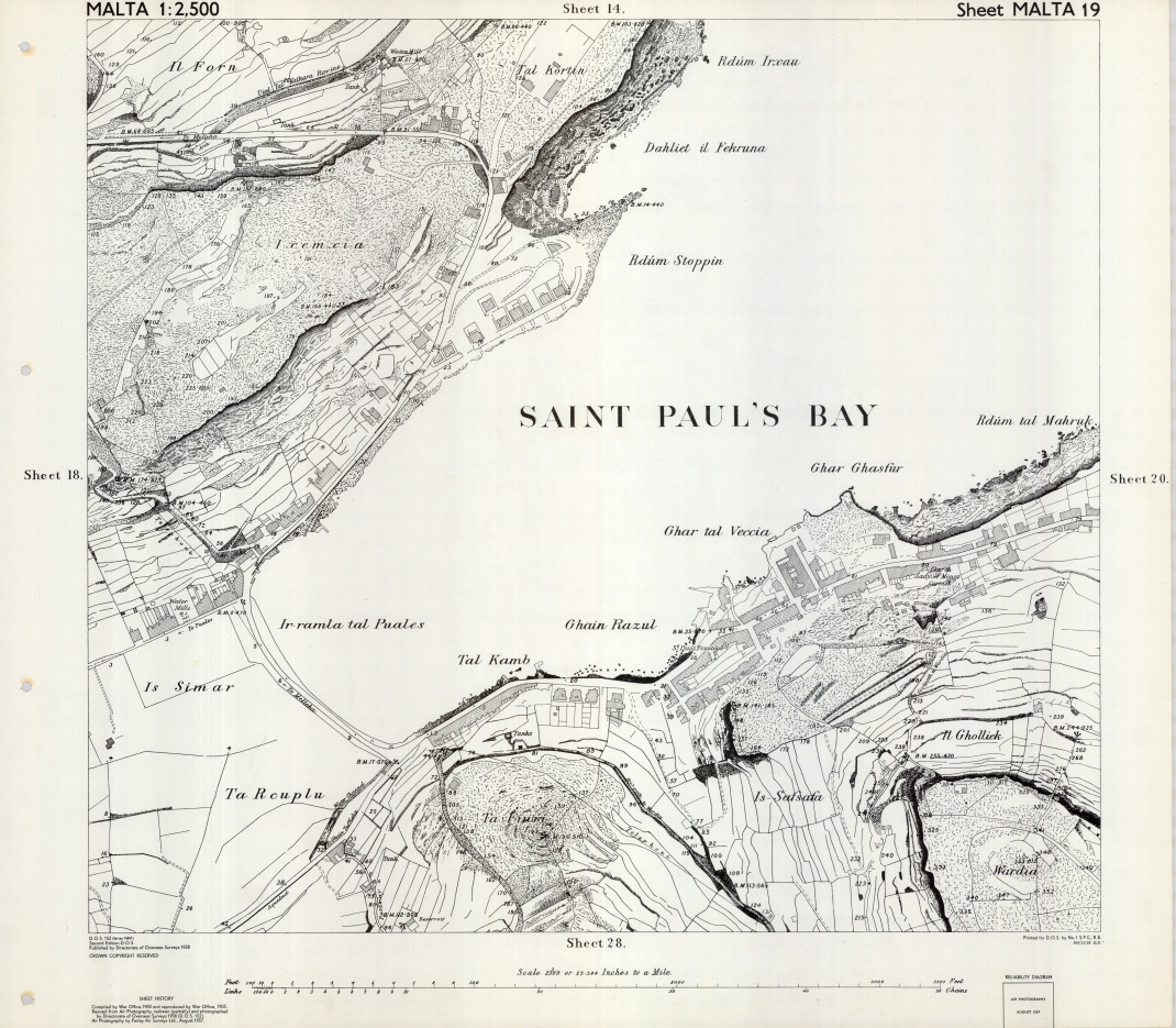 Il Forn; Rdum Irxau; Dahliet il Fekruna; Ixemxia; Rdum Stoppin; St. Paul s Bay; Rdum tal Mahruk; Ghar Ghasfur; Ghar tal Veccia; Ir-Ramla tal Puales; Ghajn Razul; Tal Kamb; Is Simar; Ta Rcuplu; Is Safsafa; Ta Fiuri; Wardia
