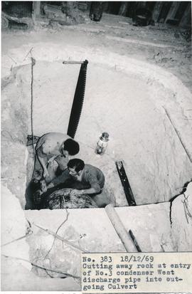 Marsa Water Power Station - Cutting away rock at entry of N.3 condenser West discharge pipe into out-going Culvert
