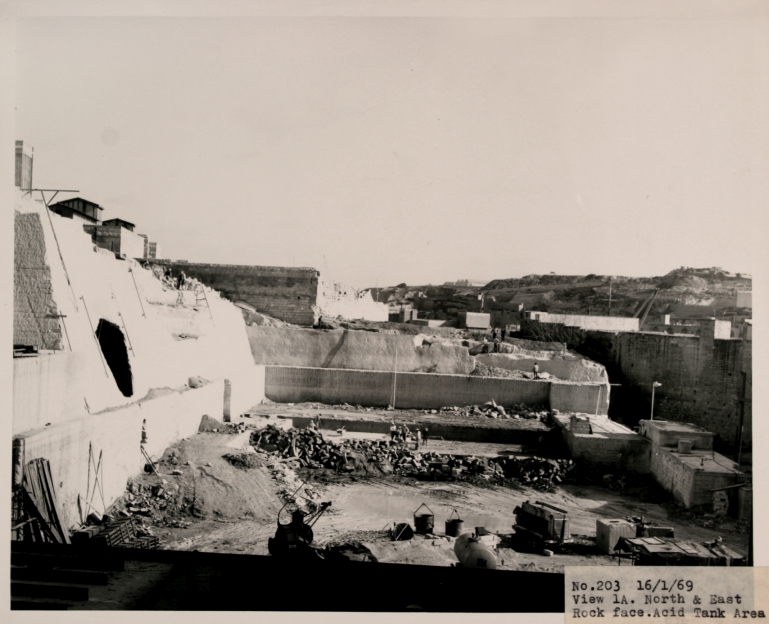 Marsa Water Power Station - View 1A North & East Rock face, Acid Tank Area