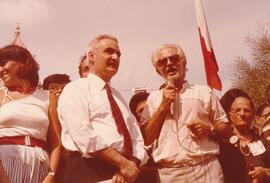 Maurice Mifsud Bonnici with Prime Minister Karmenu Mifsud Bonnici addressing a crowd of Malta Labour Party supporters.