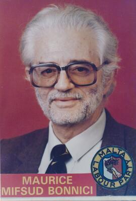 A photograph of Maurice Mifsud Bonnici's electoral campaign poster. Maurice had contested the 1981 and the 1987 general elections on the Malta Labour Party ticket.