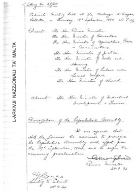 Minutes of Cabinet Meeting held on 17 September 1964