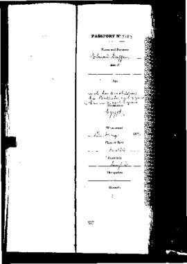 Son of - not stated; Age - ; Occupation - not stated; Place of Birth - Malta; Residence - Senglea; Destination - Egypt; Remarks - accomp by children Gio Battista 7, Erminia 3