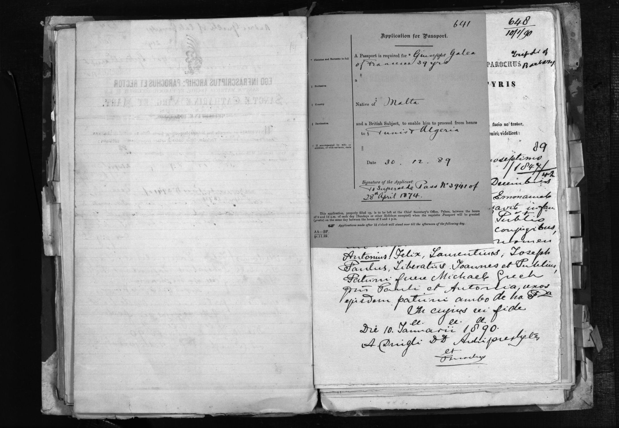 Son of Francesco, DOB N/A, Age 39, Occupation not stated, Town, Village, Parish Malta, Destination Tunis & Algeria, Remarks