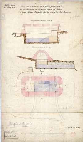 Plan and Sections of a Bath proposed to - be constructed on the front Shore of Bighi - under Naval Hospital for the use of the Assts Surgeon's