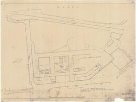 Plan of PWD workshops in Marsa showing in blue proposed petrol and diesel pumps and storage tanks