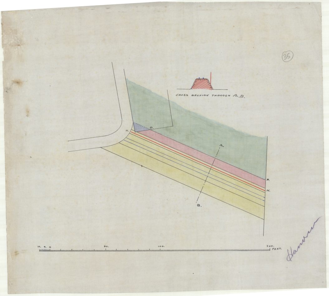 Plan showing a section of land with a cross section through points A and B on the plan.