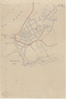 Plan showing in a red line the proposed route for a tramway in Sliema through Sliema creek.