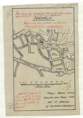 Plan showing in red the portion of Railway track in Hamrun, applied for by Carmelo Muscat and refused on 22.02.34