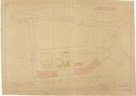 Plan showing in yellow the proposed buildings for demolition and in red the projected buildings in the proposed extension of government garage and carpentry workshops in Marsa. (Refer to P.W. 328-48 and OPM 425-48-
