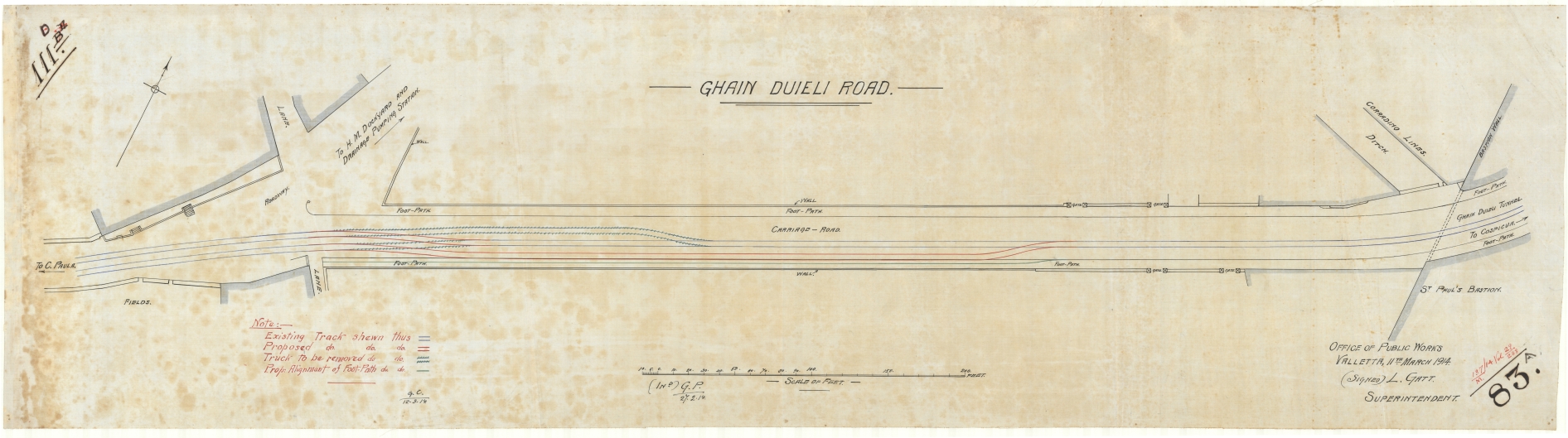 Plan showing theesiting and proposed tracks lines, track to be reomved and proposed alignment of footpath in Ghain Duieli Road