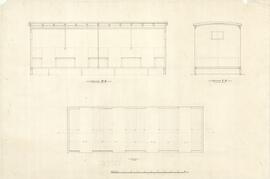 Item 62796 - Plan, side section and rear section of the tram carriage.