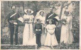 (Clockwise from top left) Harold Micallef, Lina Gatt, May Gatt, née Formosa, James 'Jimmy' Gatt (son of Brigadier Alfred J. Gatt), Rosa Ripard, unnamed girl and Peter Gatt at the wedding of May and James Gatt.