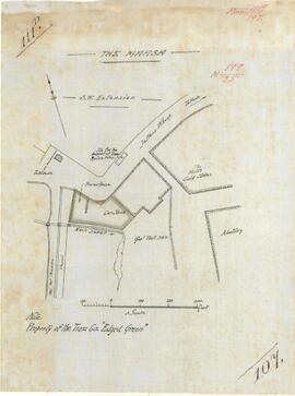 Site plan of the shed owned by tramways Co. in Marsa, showing edged in green.