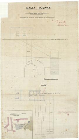Site plan, plan and section showing the proposed enlargement of the tunnel at Floriana station.