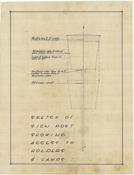 Sketch of sign post showing access to holdings and lamps.