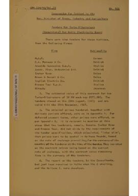 Item 0921 - Tenders for Turbo-Alternators (Generators) for Malta Electricity Board